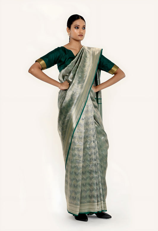 Dhari - BOTTLE GREEN GOLD SILVER JARI SONA RUPA