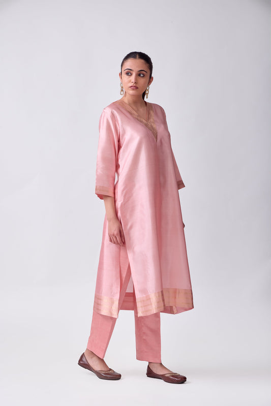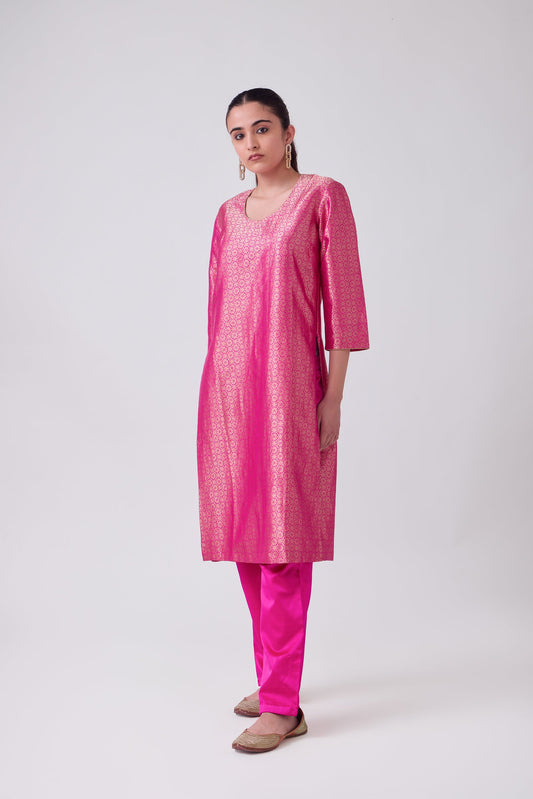 Kurta - Pink Silk Brocade