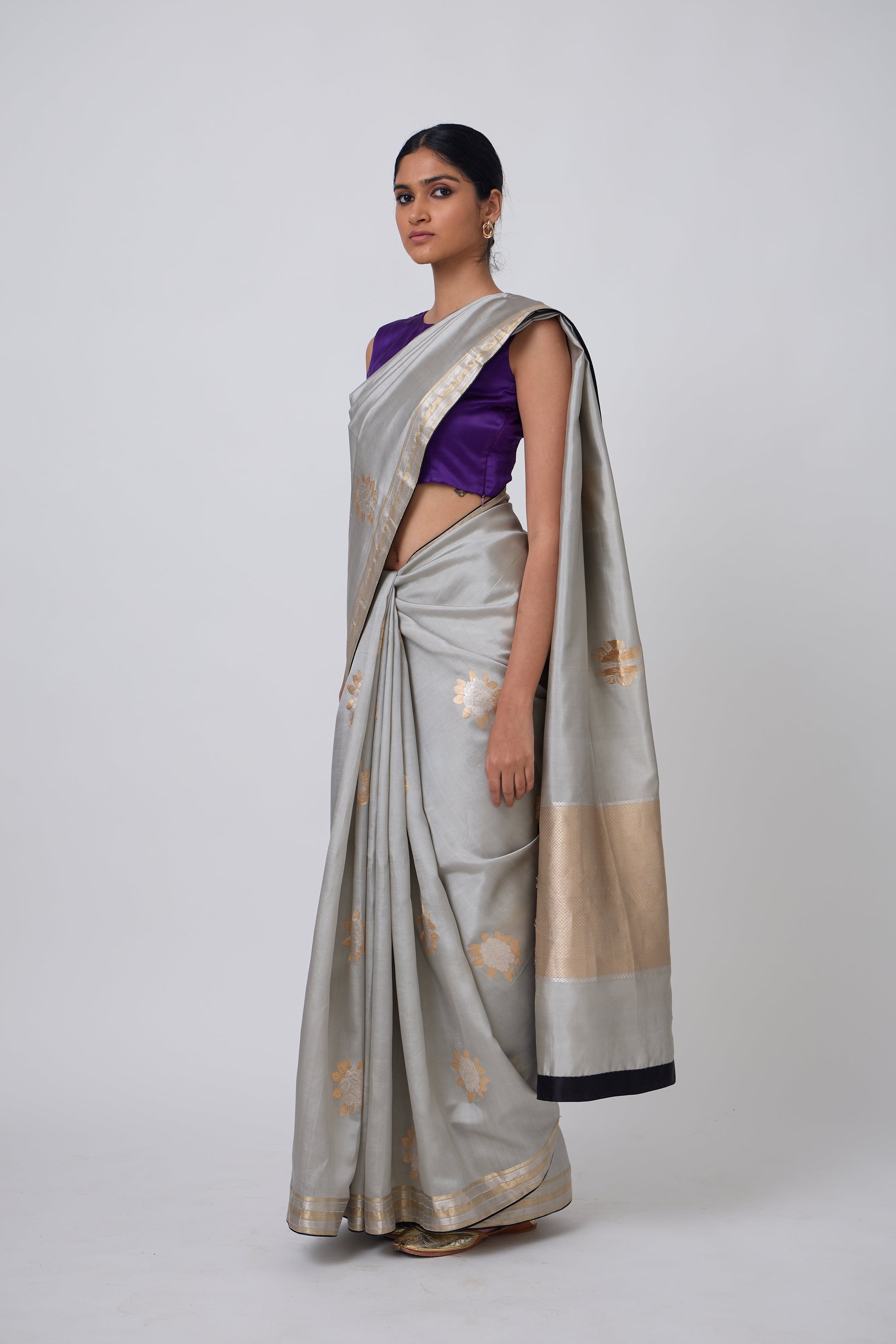 Weaving Technique: handwoven in traditional Kadwa technique, each motif (the "booti" ) is woven individually by hand.