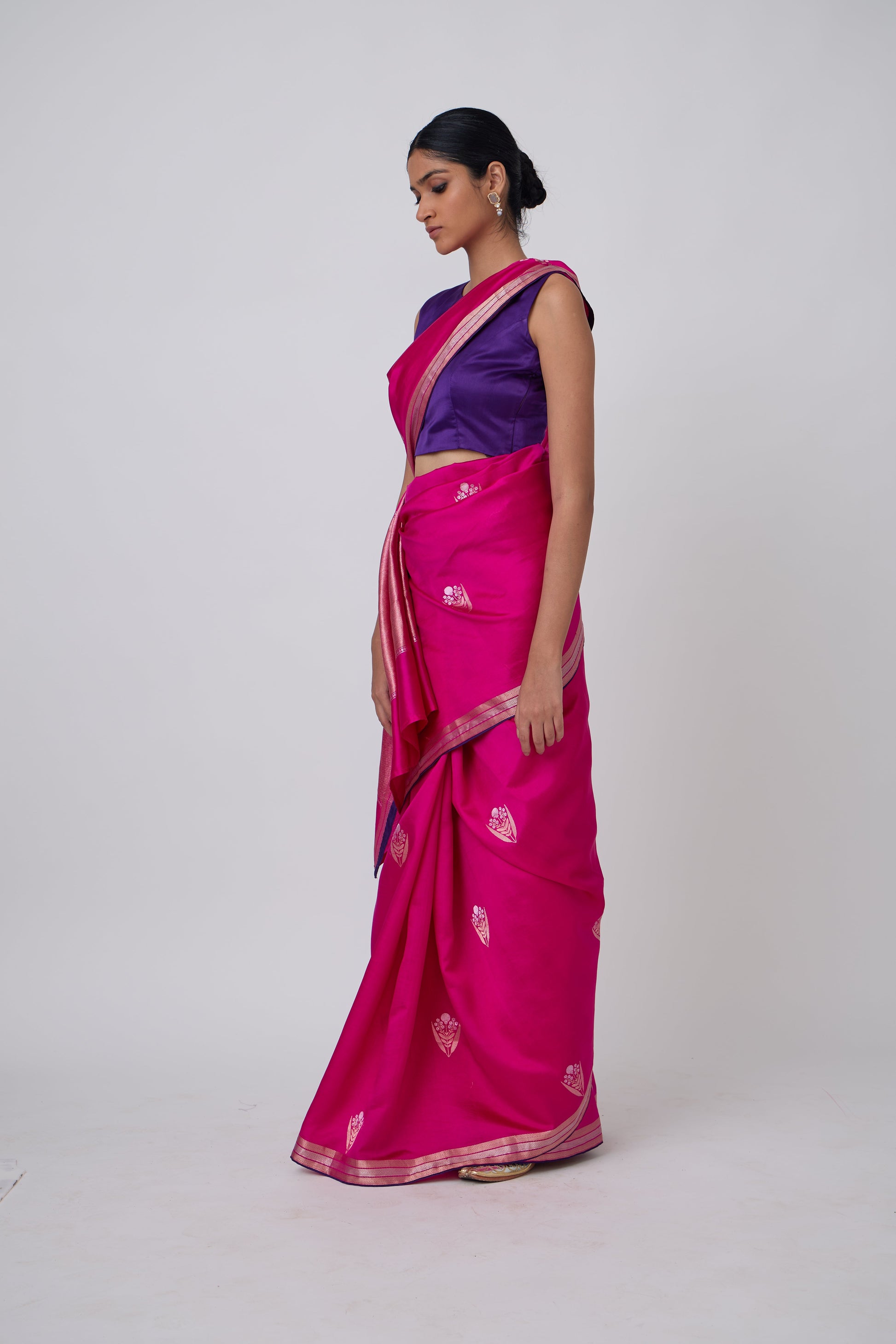 Weaving Technique: handwoven in traditional Kadwa technique, each motif (the "booti" ) is woven individually by hand.