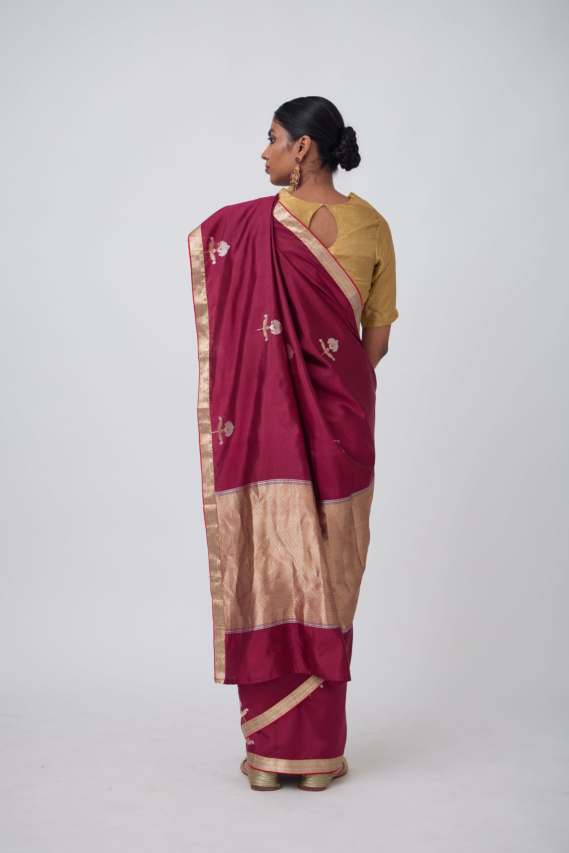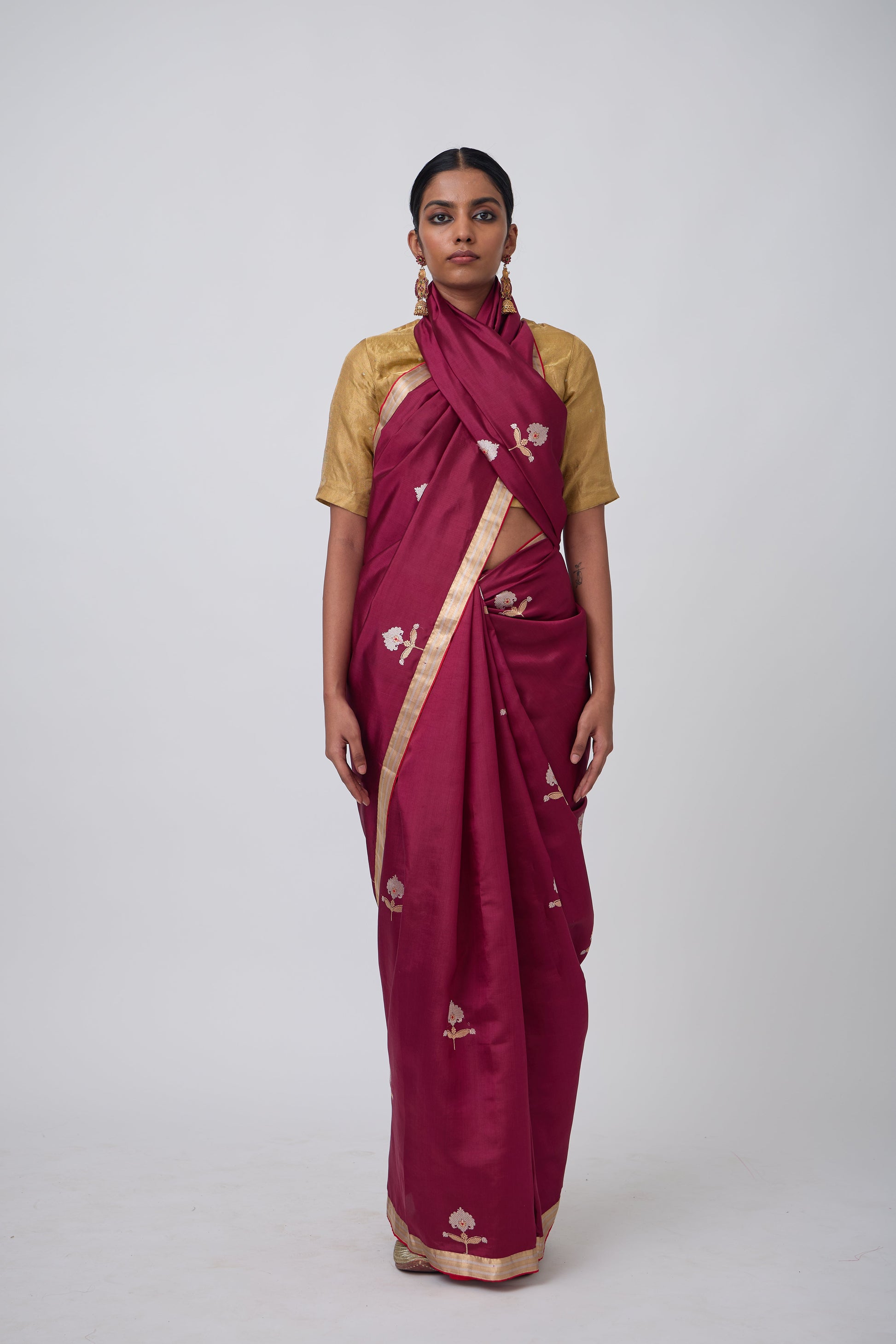 Booti - Wine Silk Saree