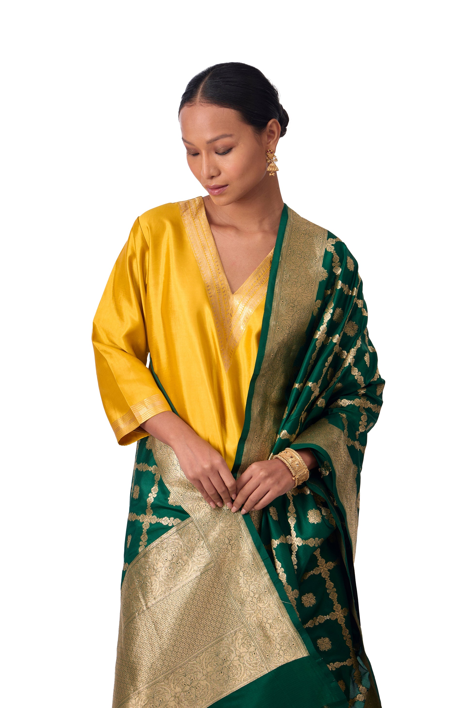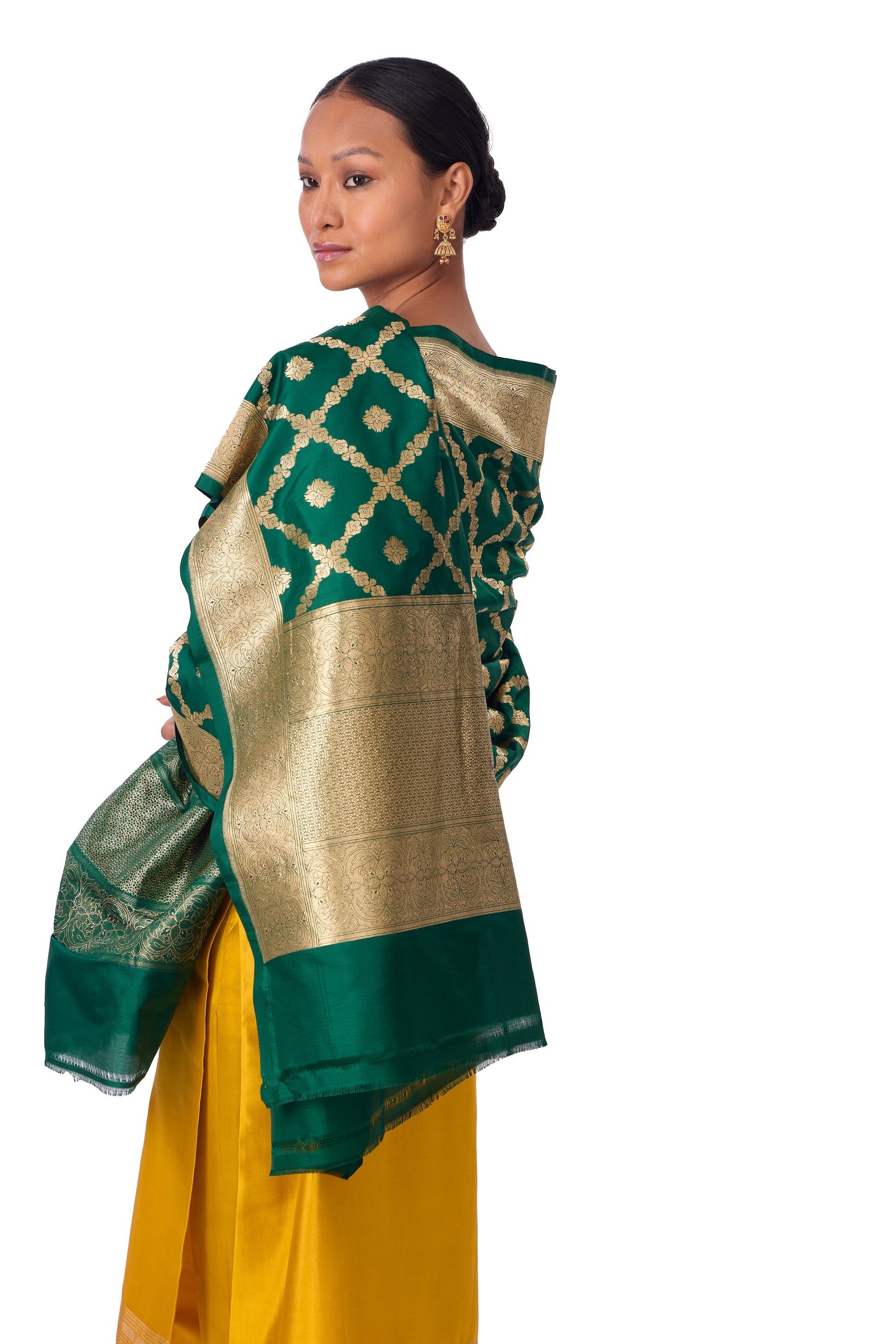 Bottle Green Katan silk Jaal Dupatta