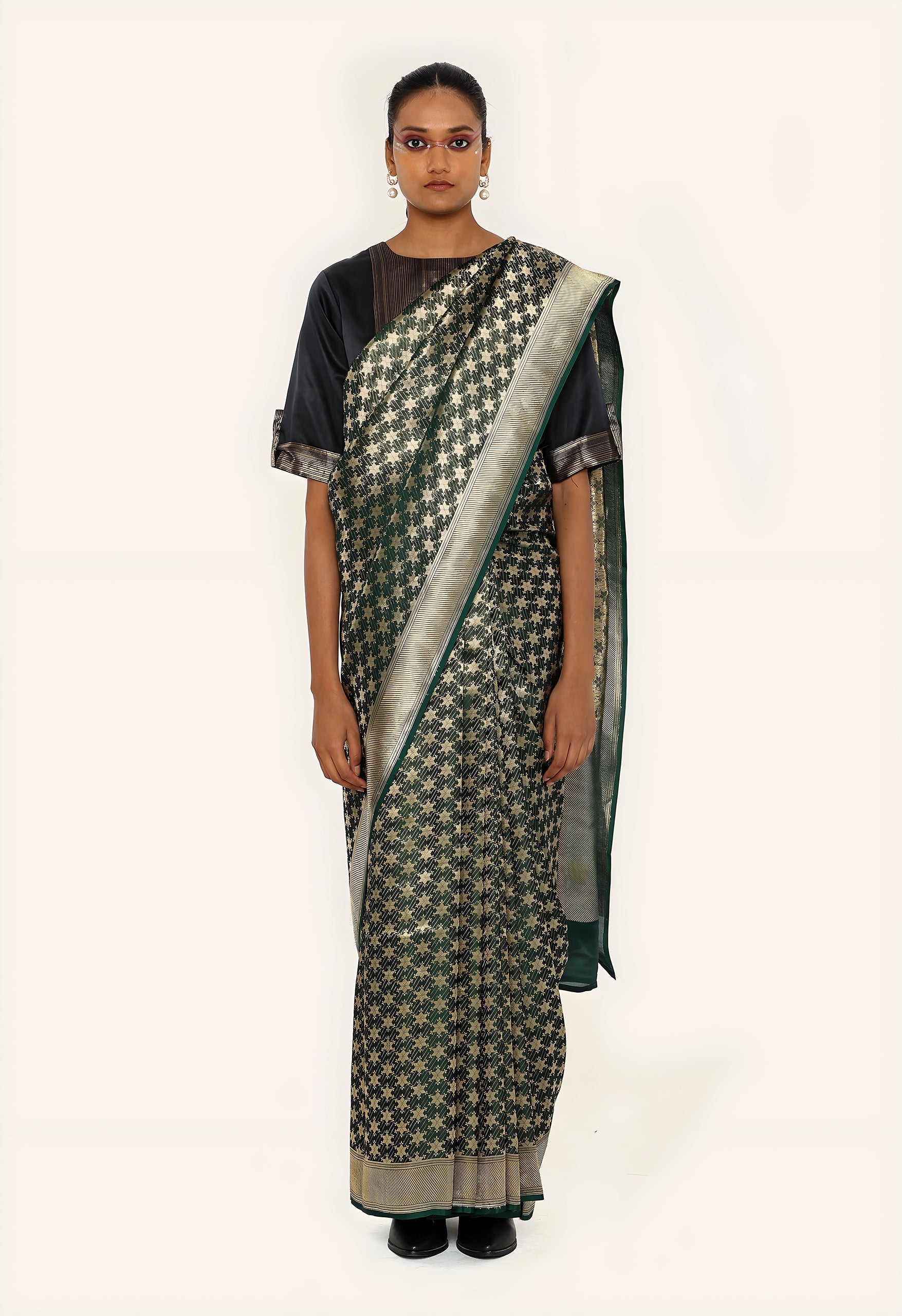 Dhari - BOTTLE GREEN GOLD JARI AMBOSE STAR