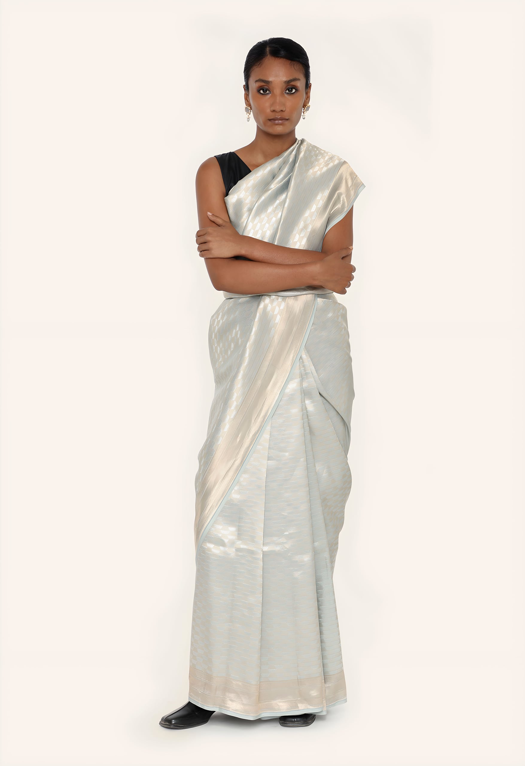 Weaving Technique: Fekwa, a specialized Banarasi technique featuring intricate patterns woven with metallic zari.