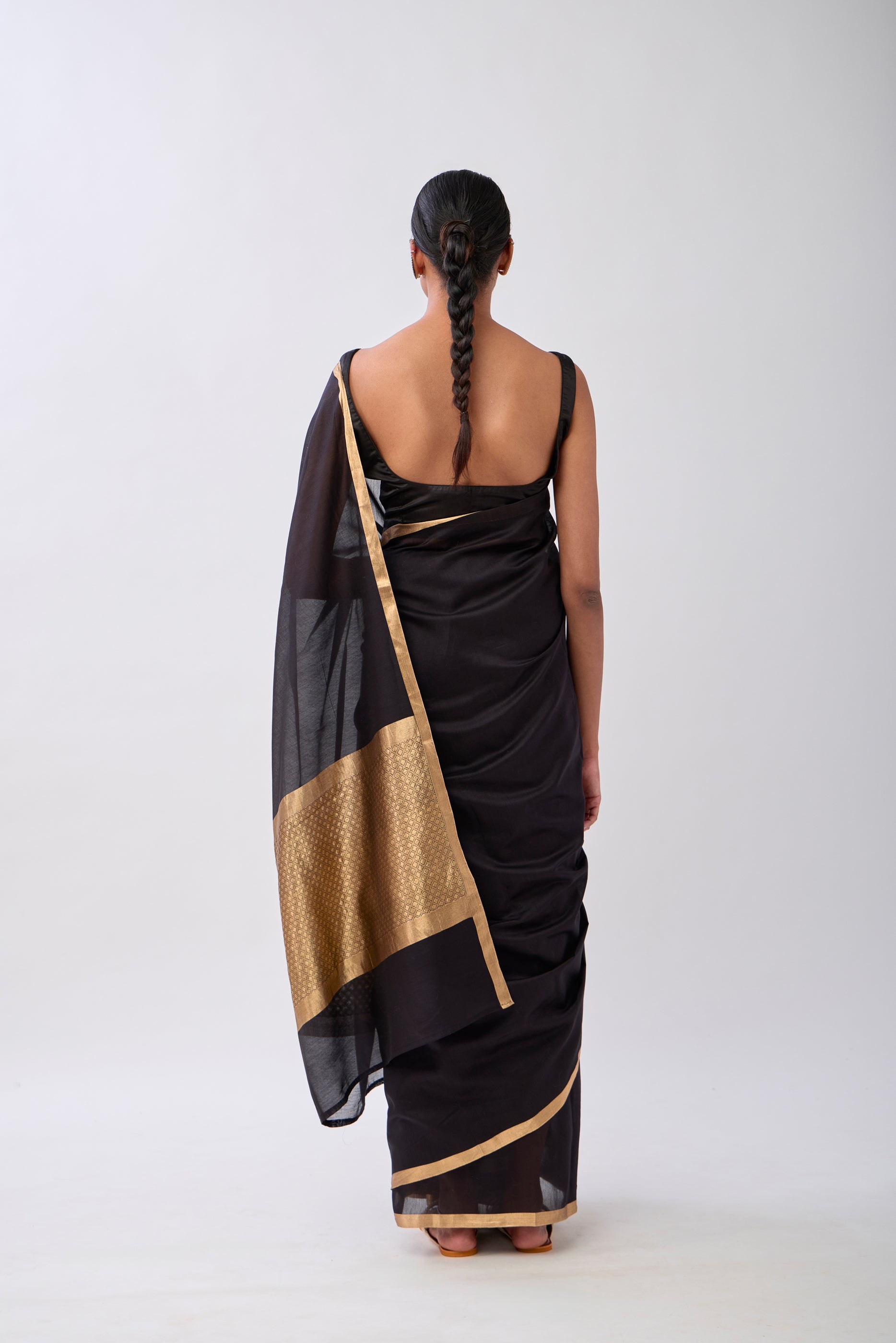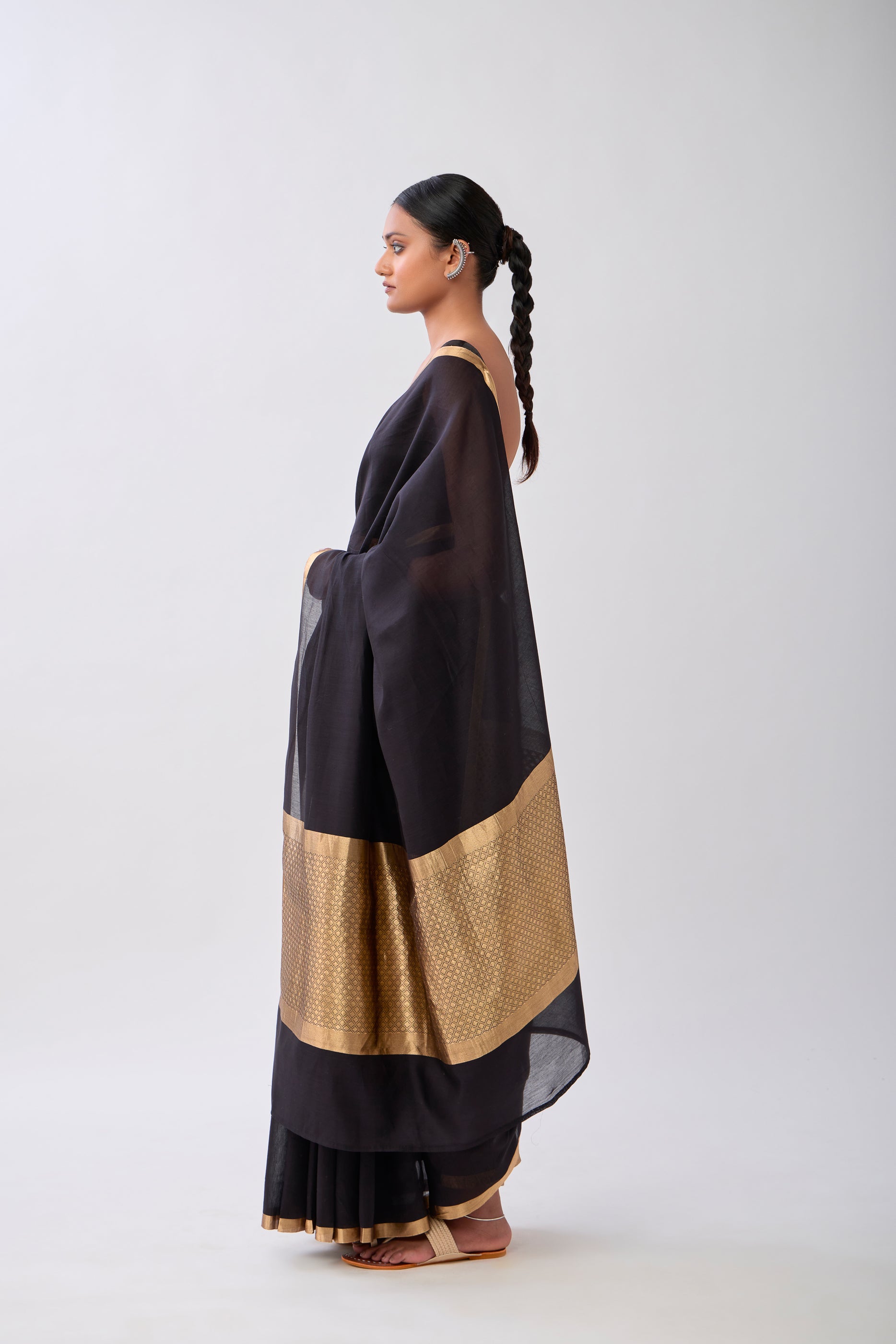 Chanderi Cotton Saree with Gold Zari Border & Pallu