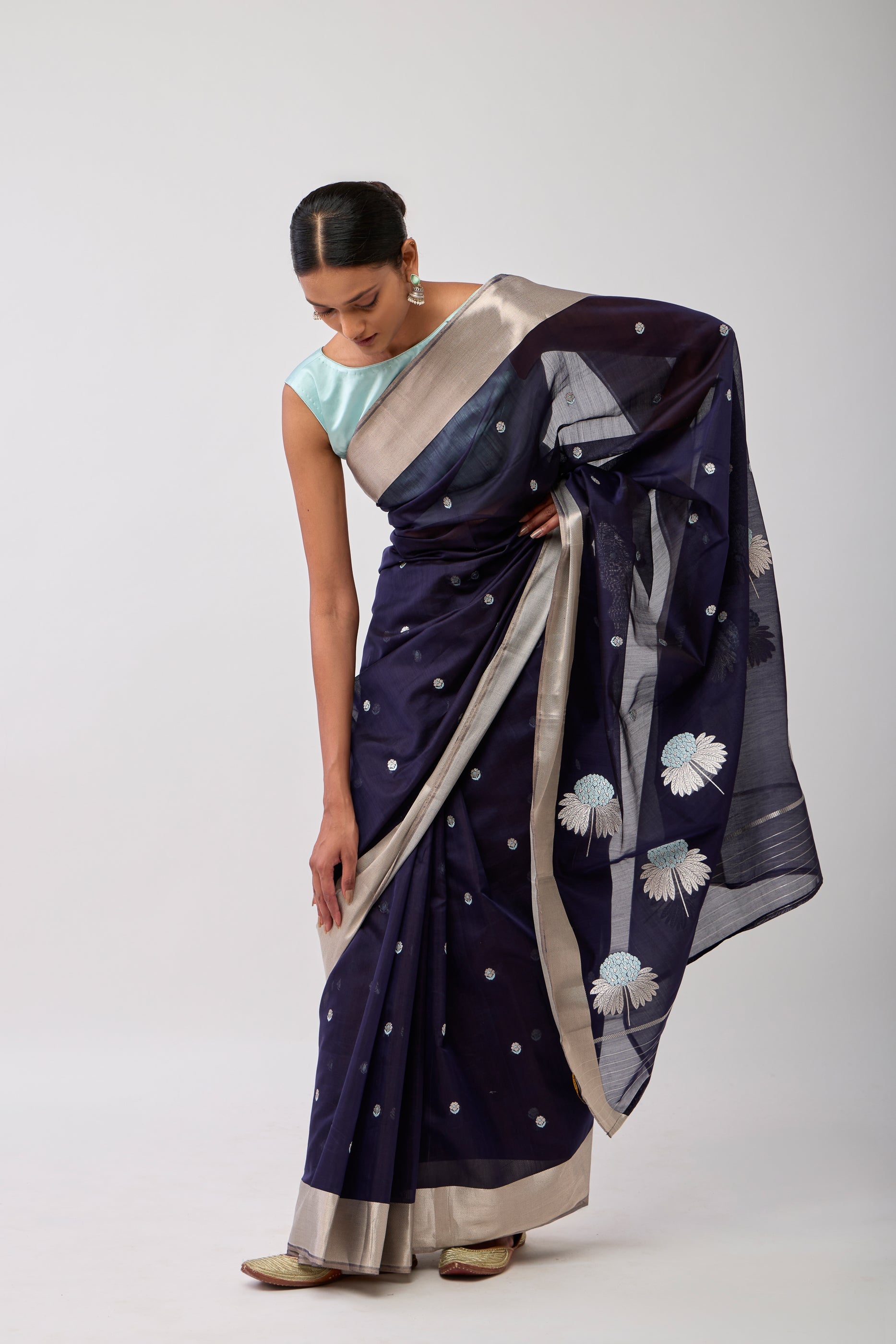 Chanderi Mulmul Saree with Kadwa Booti & Aanchal