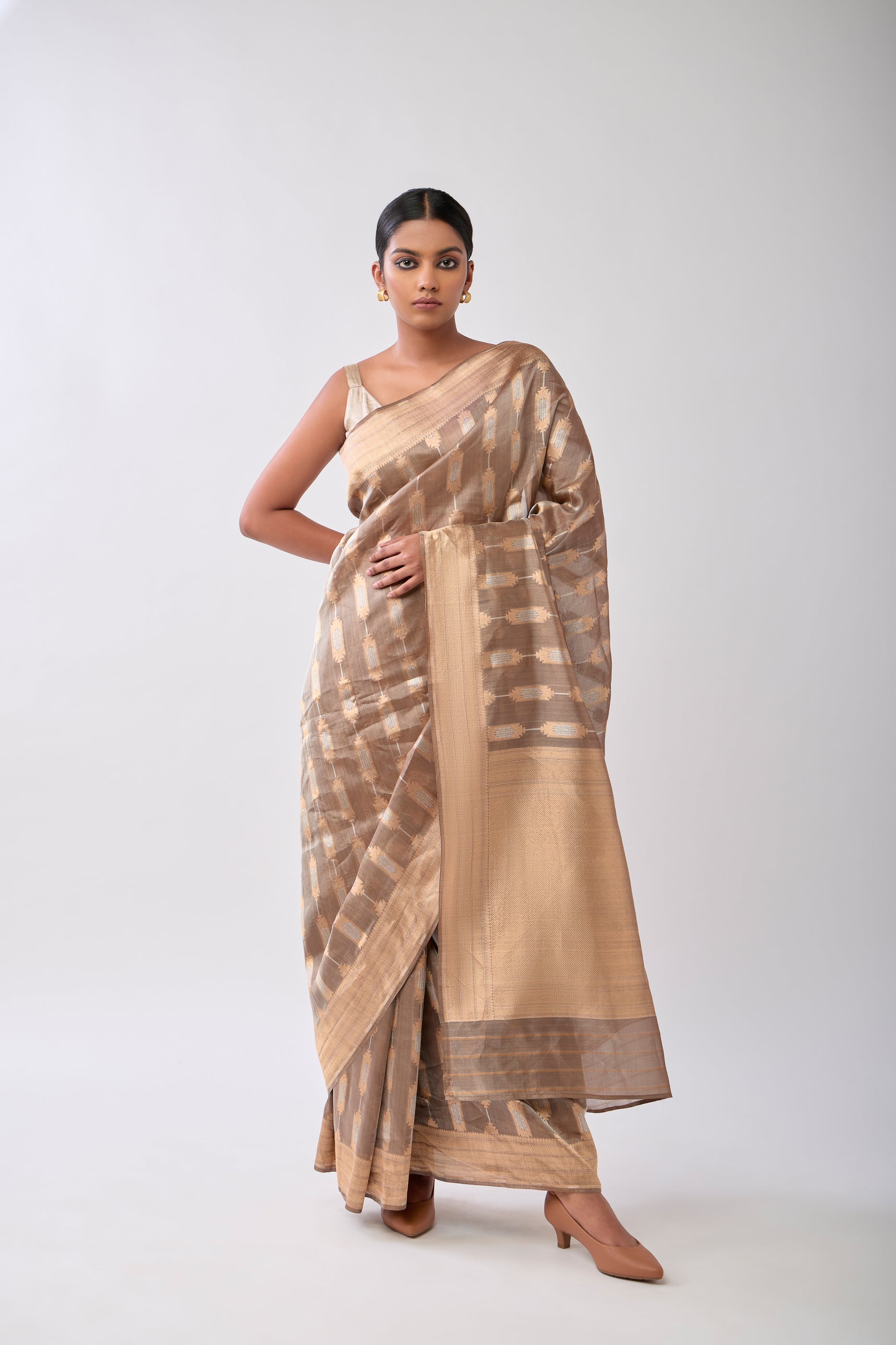 Silk Tissue Saree with Fekwa Gold & Silver Zari