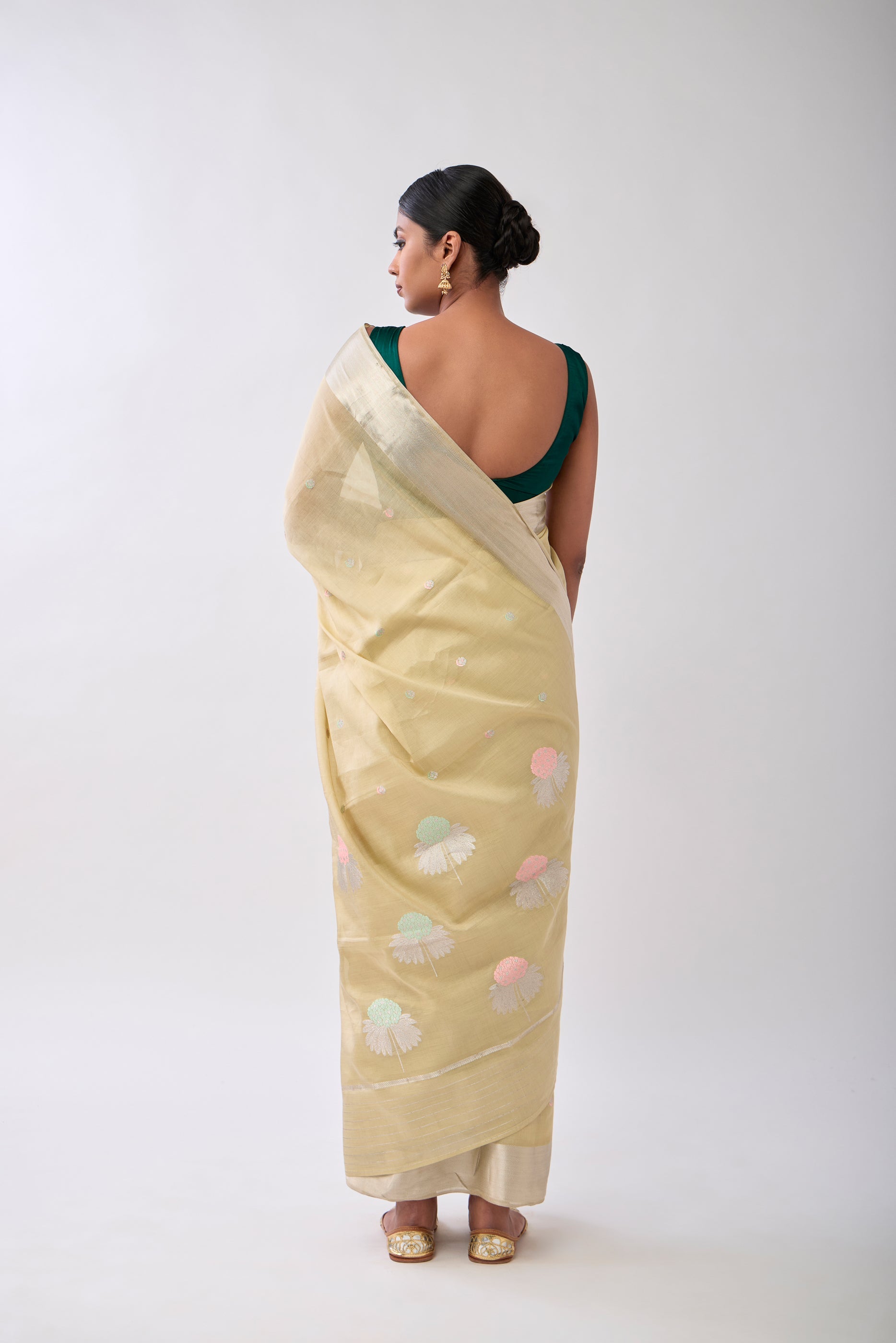 Chanderi Mulmul Saree with Kadwa Booti & Aanchal