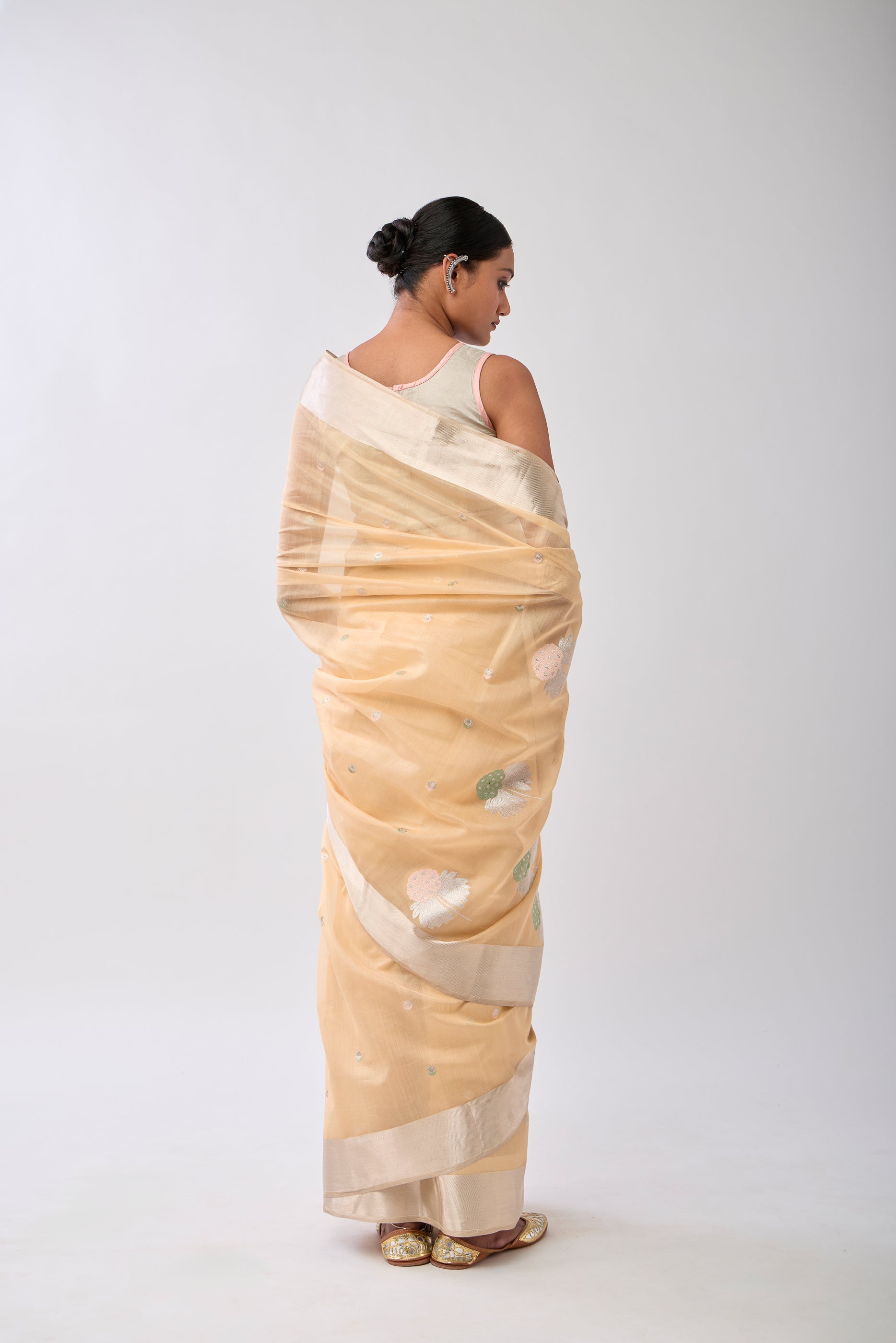 Chanderi Mulmul Saree with Kadwa Booti & Aanchal