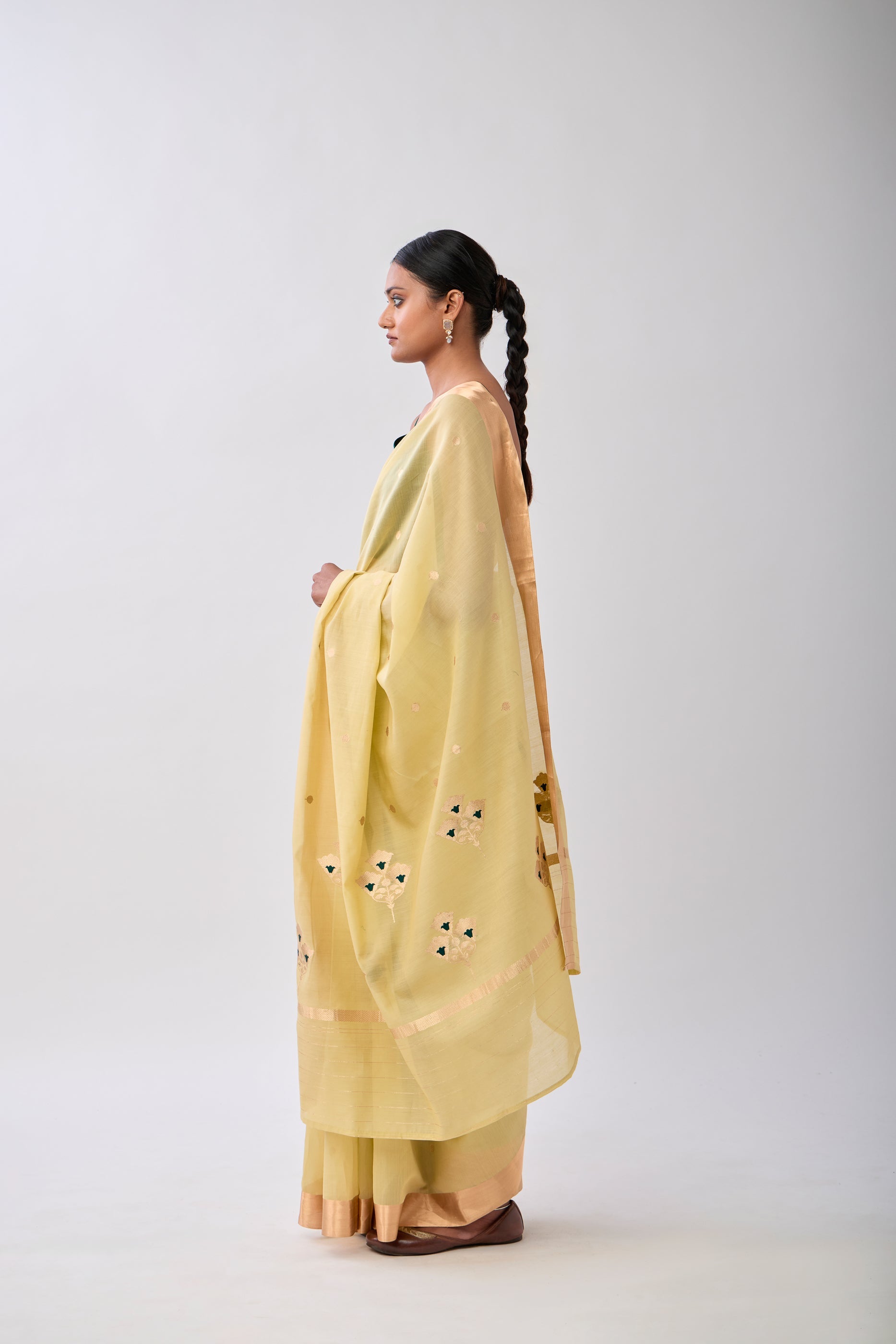 Chanderi Mulmul Saree with Kadwa Buti & Aanchal