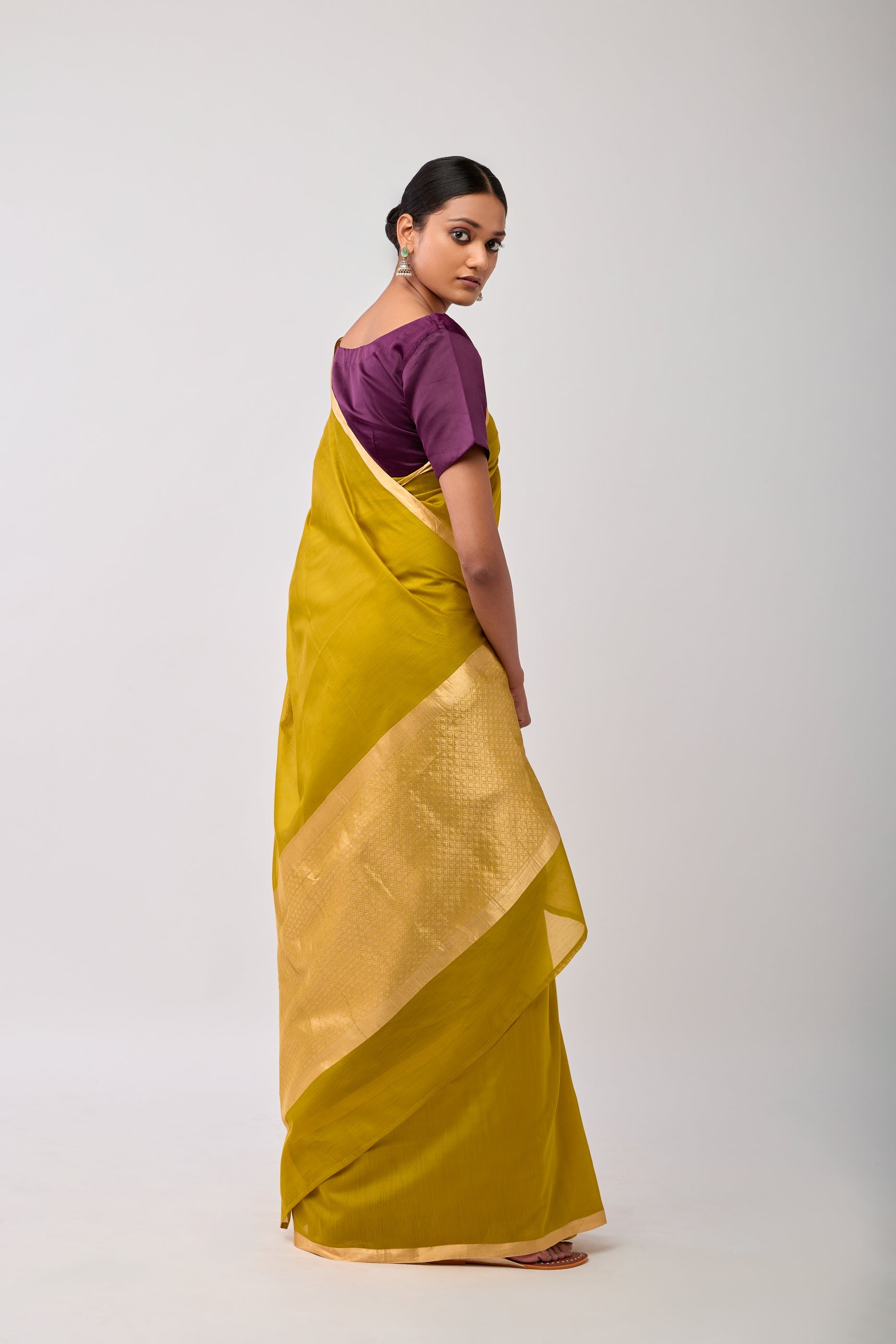 Chanderi Cotton Saree with Gold Zari Border & Pallu