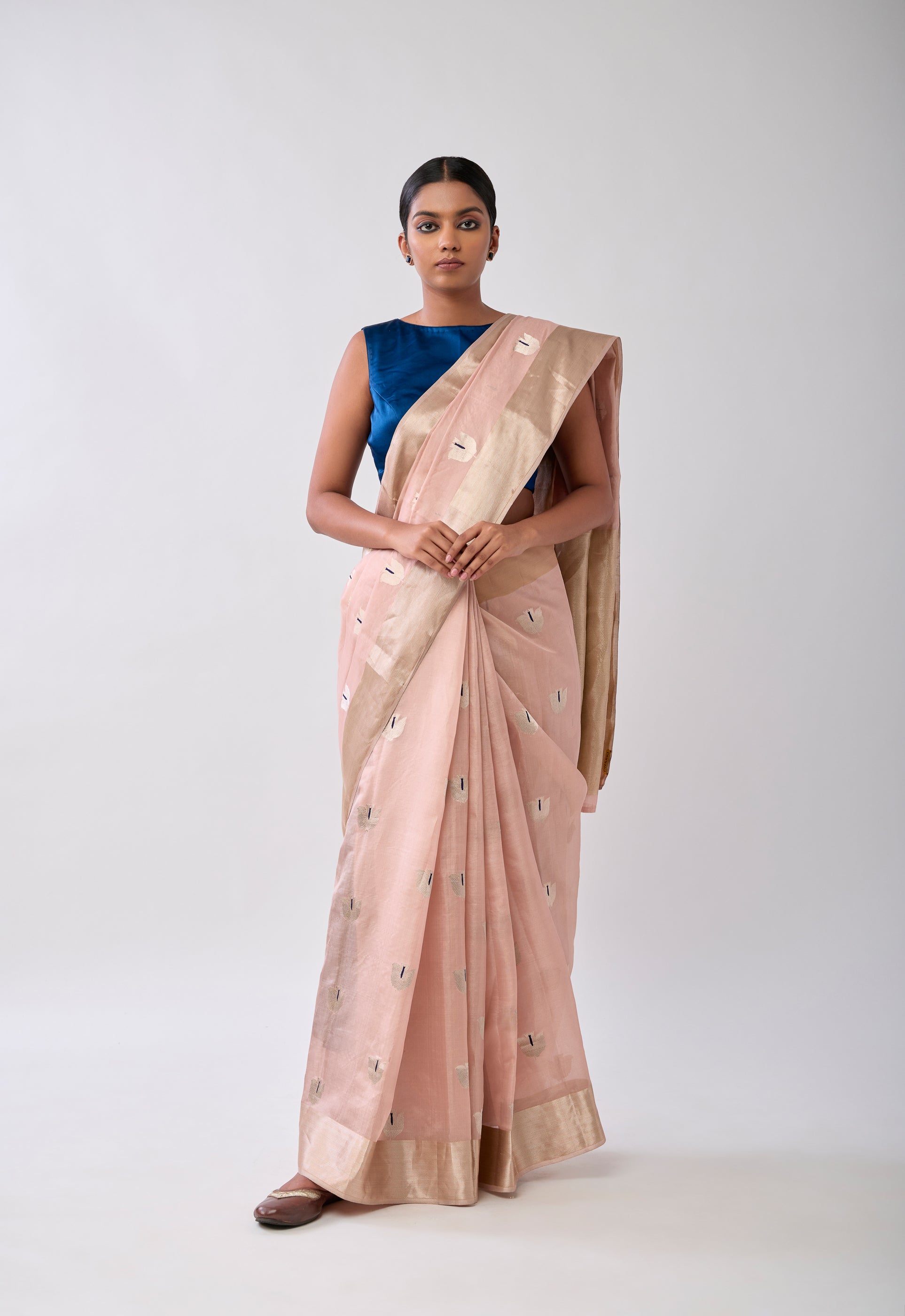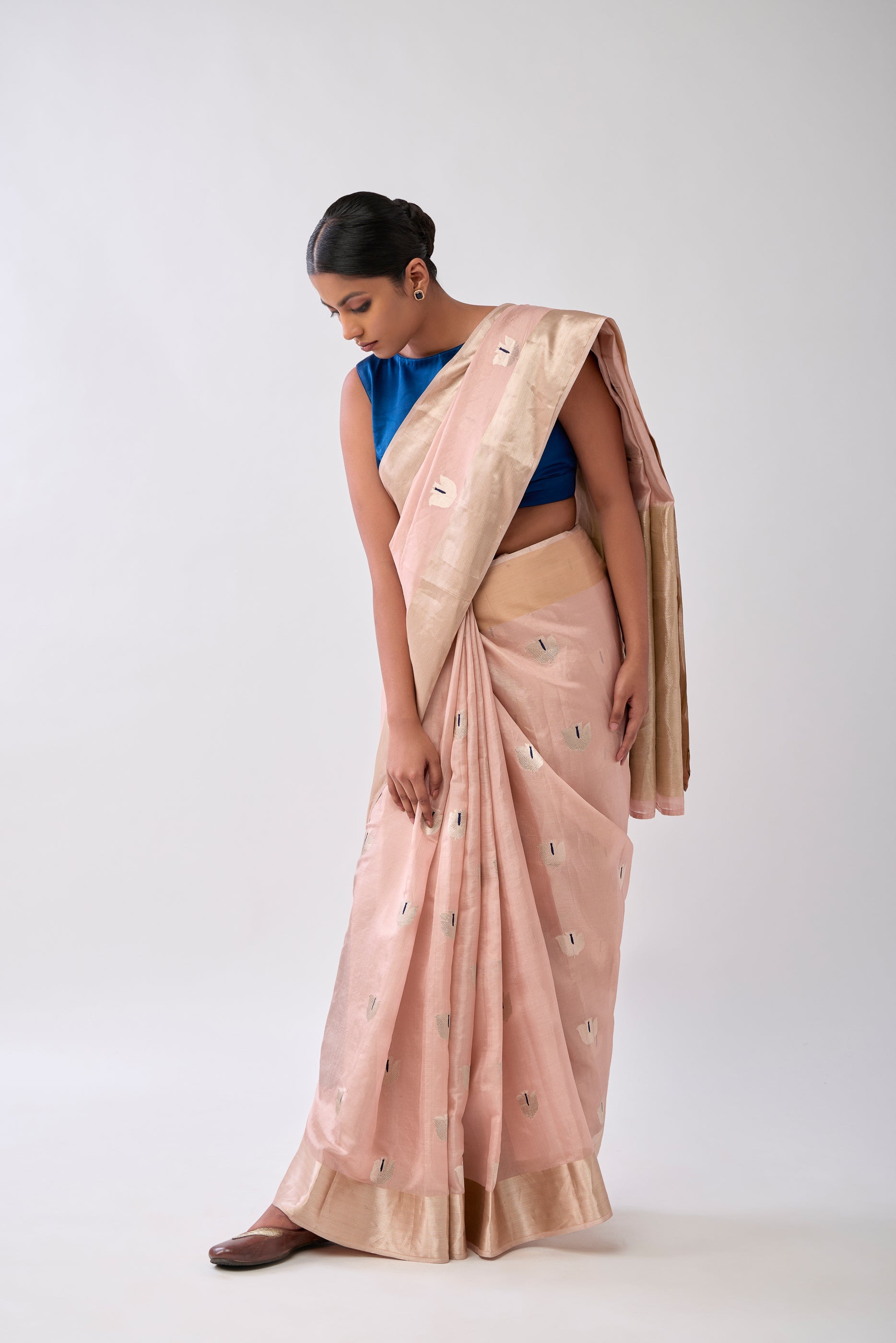 Chanderi Silk Saree with Kadwa Silver Buti & Meena Work