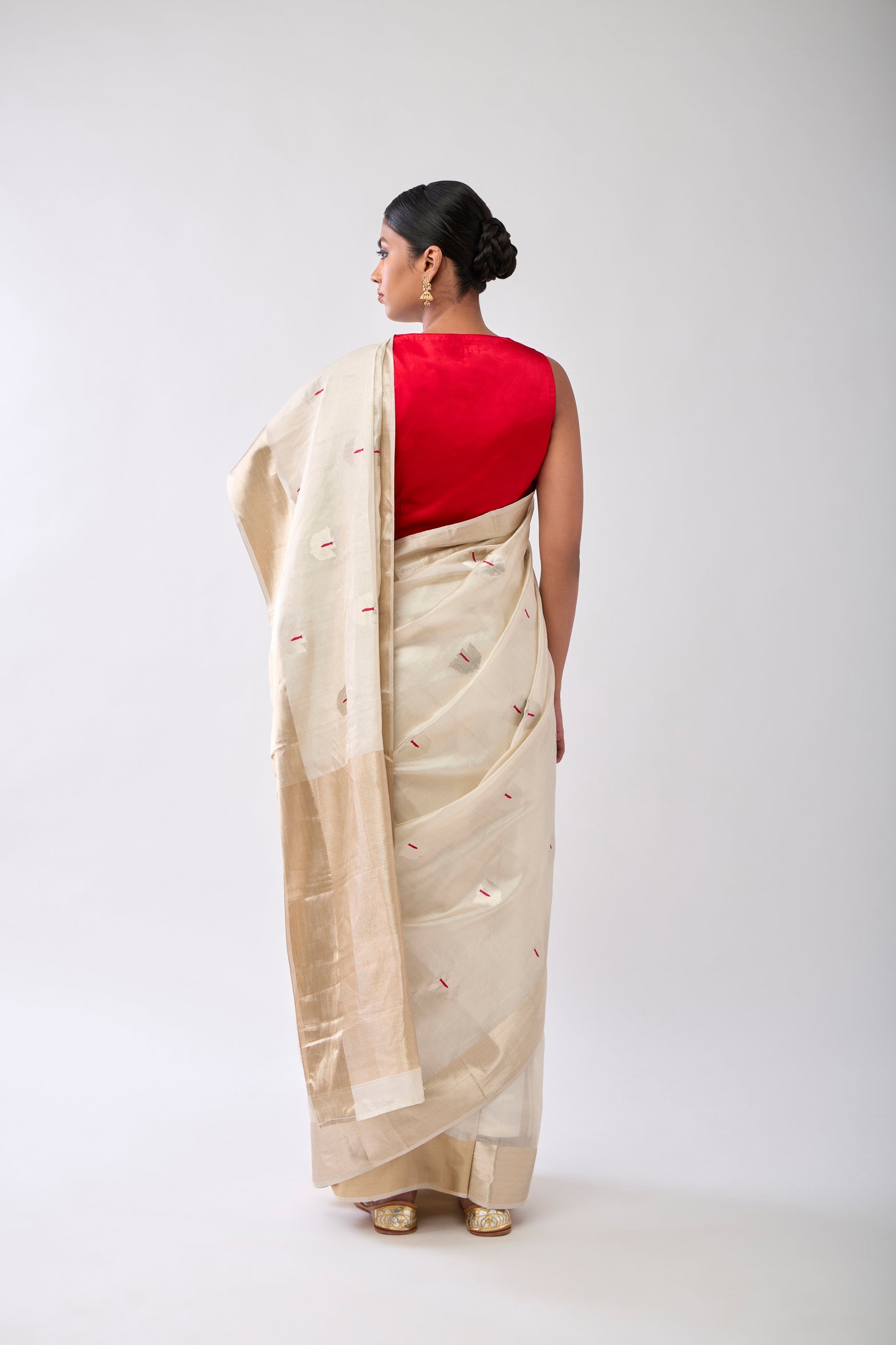 Chanderi Silk Saree with Kadwa Silver Buti & Meena Work