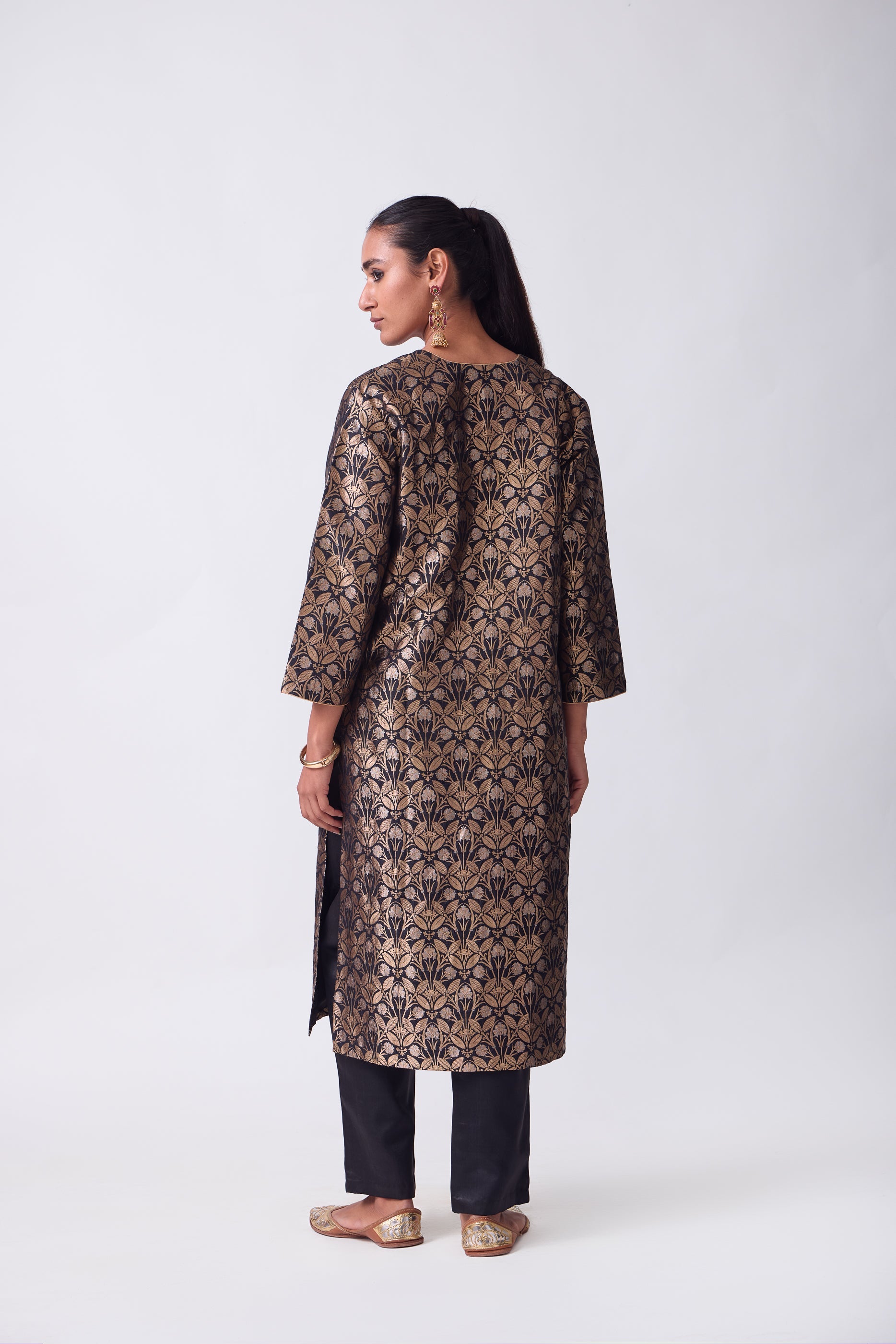 Kurta - Black Silk Brocade