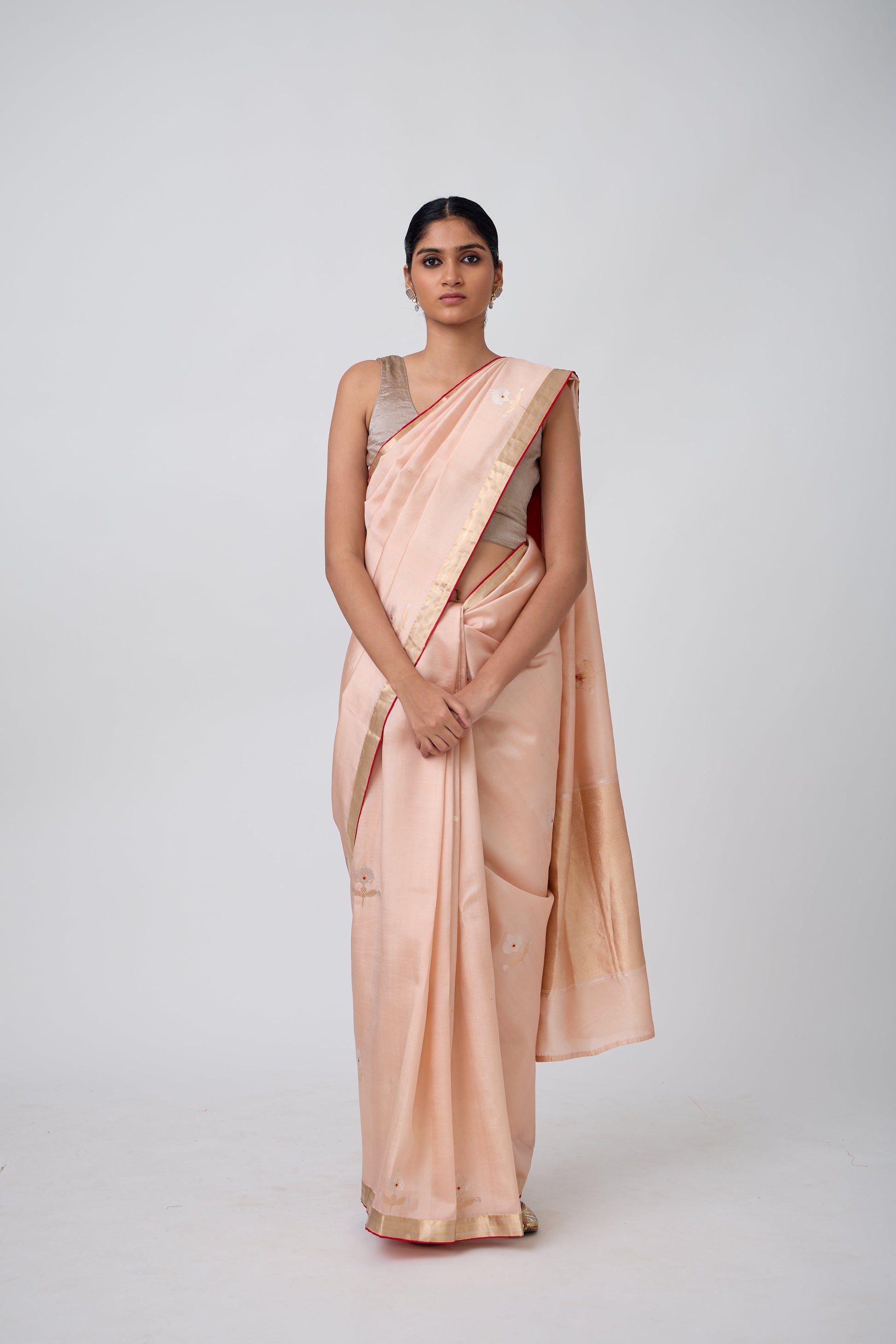 Booti - Peach Silk Saree,