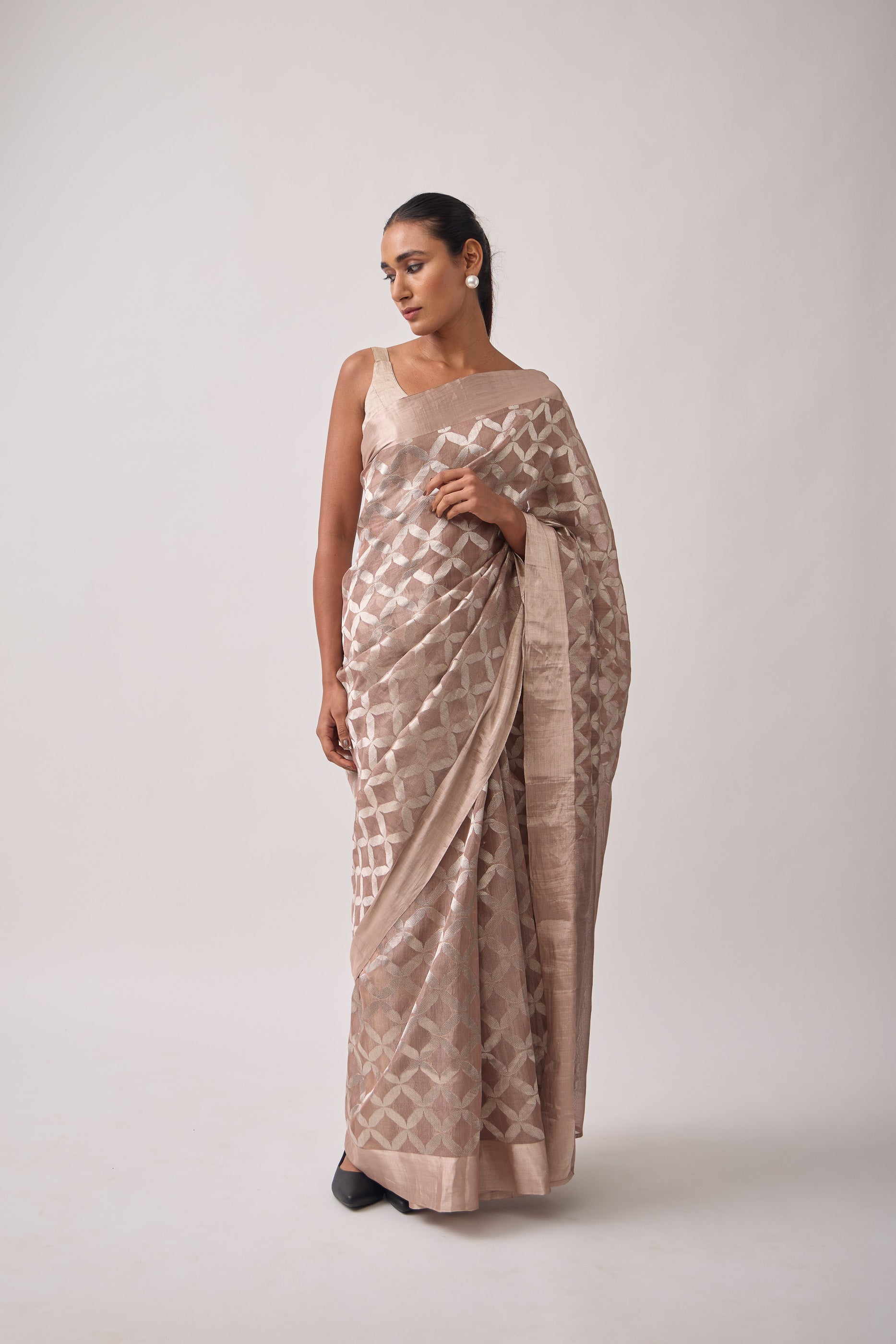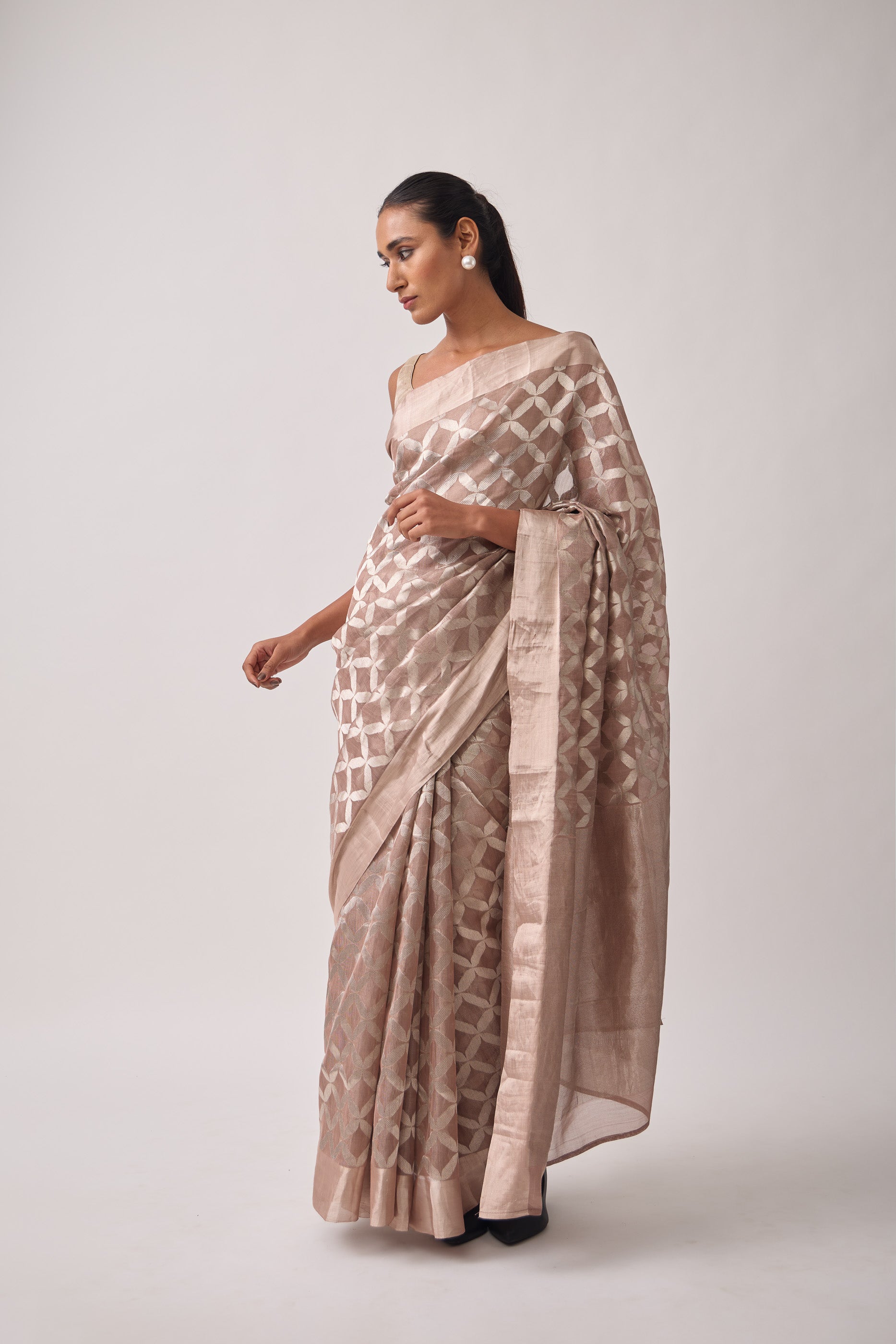 Chanderi tissue saree: handwoven with intricate silver zari kadwa jal