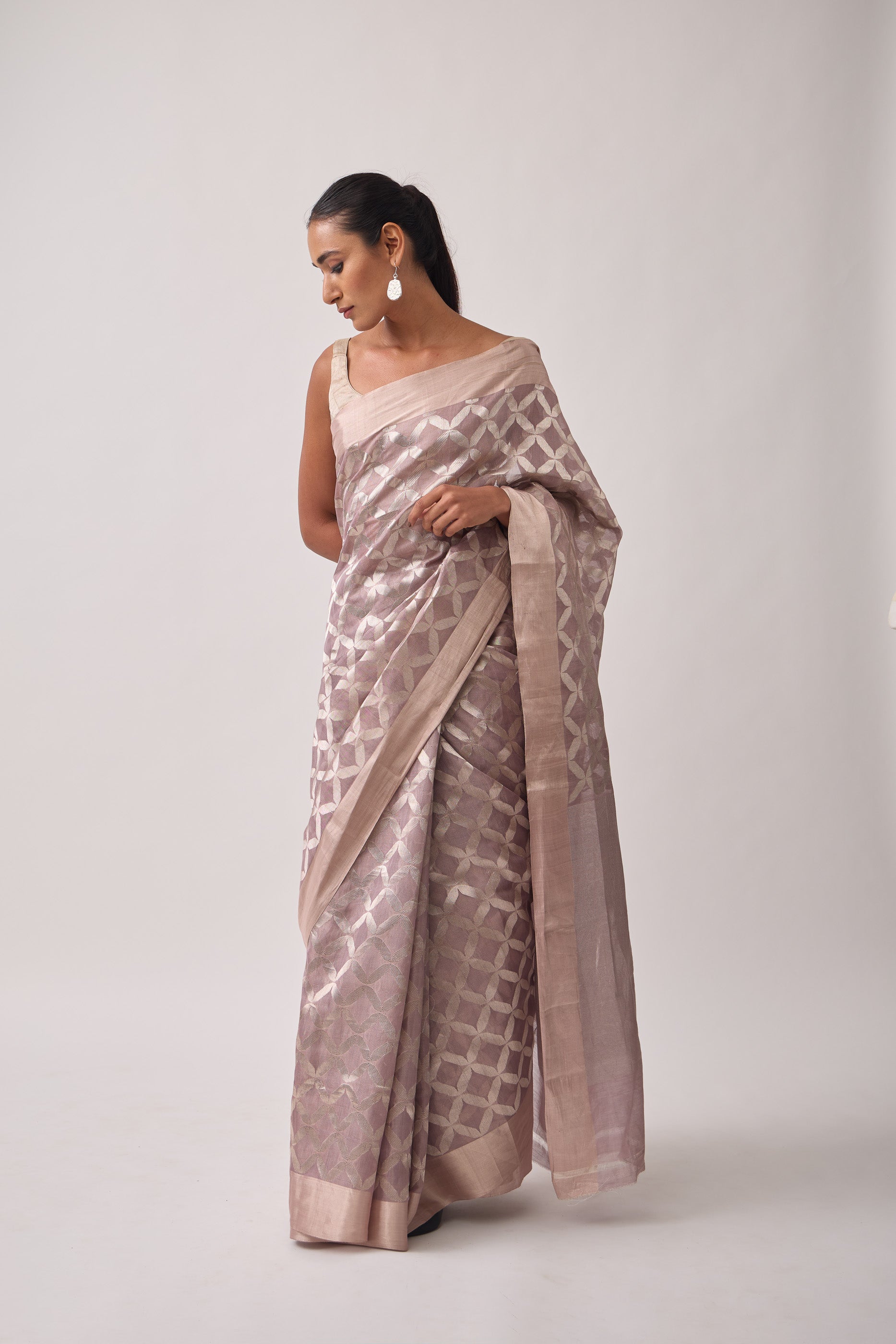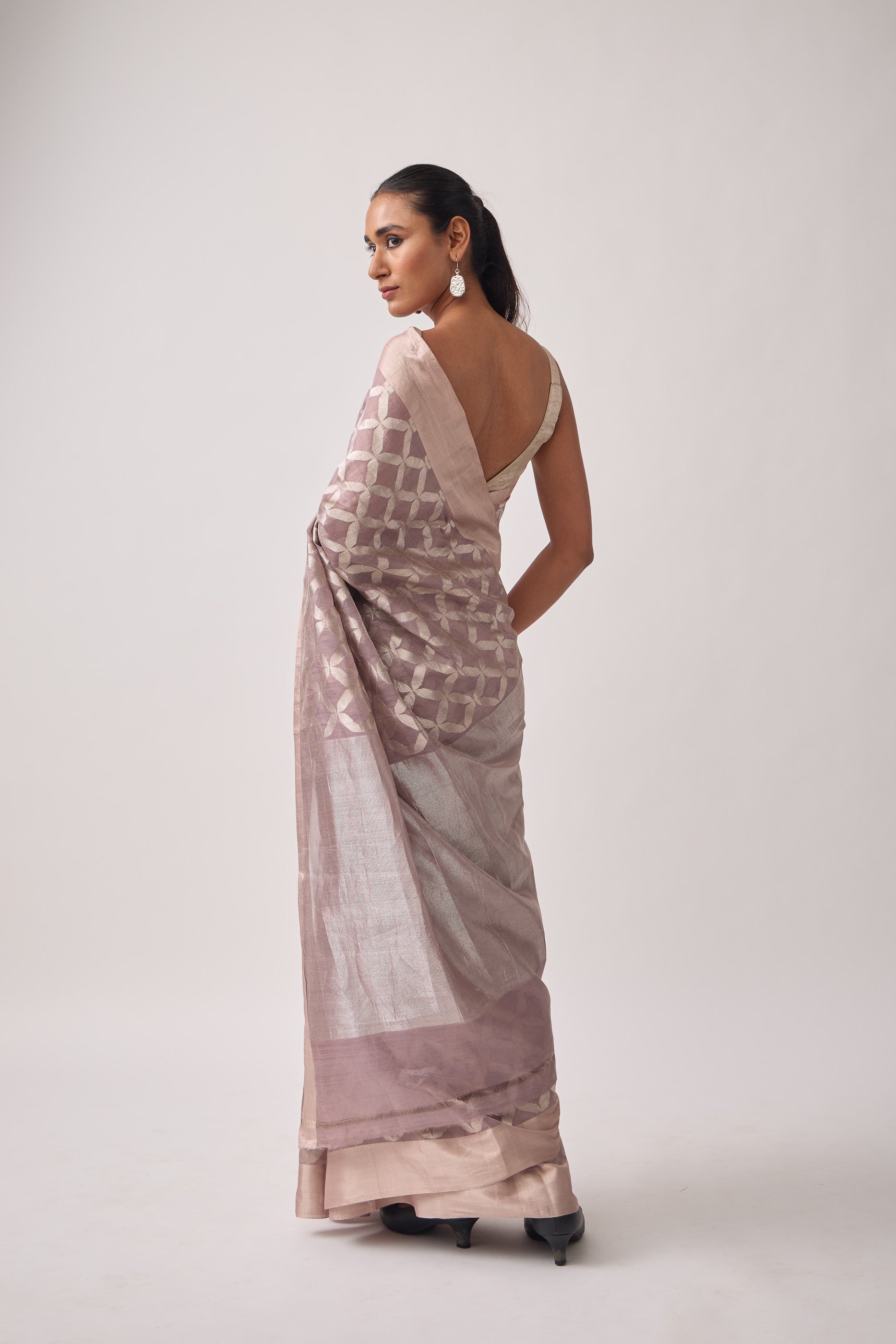 Chanderi tissue saree: handwoven with intricate silver zari kadwa jal